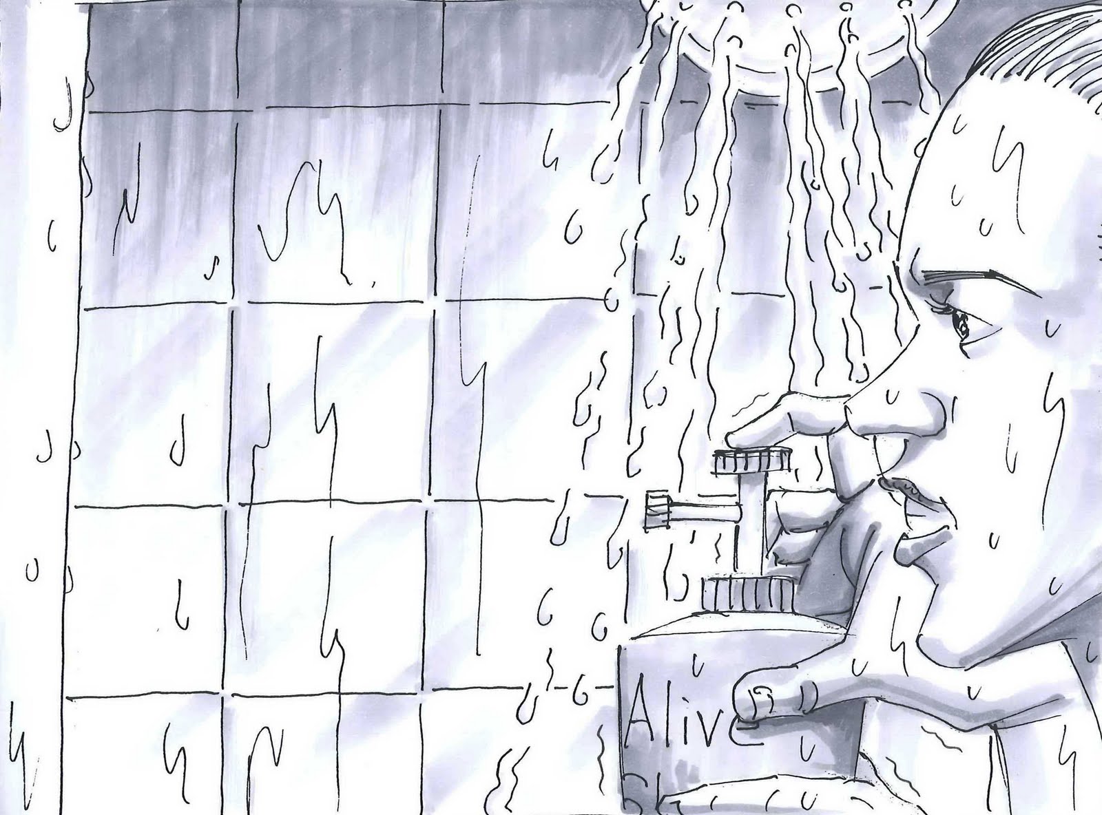 (4) The sound of the shower sprinkle: "Shaaahk!"